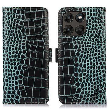 Motorola Moto G77/G67 Crocodile Series Lommebok-deksel i Lær med RFID - Grønn