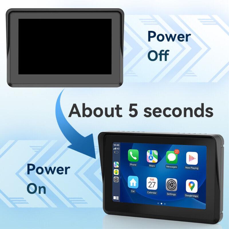 Motorsykkel trådløs CarPlay / Android Auto med sykkelholder, støtte for berøringsskjerm - 5"