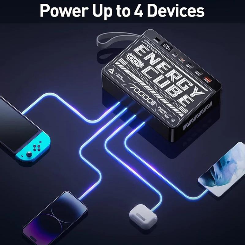 Få strøm til alt, hvor som helst, med Movespeed YSPBZ70-22K powerbank, en bærbar lader med høy kapasitet på 70000mAh som er designet for ultimat utholdenhet og hastighet. Med flere hurtigladeporter og et dristig mekka-inspirert design er den bygget for å holde enhetene dine med strøm i dagevis - enten du er på camping, reise eller fjernarbeid.