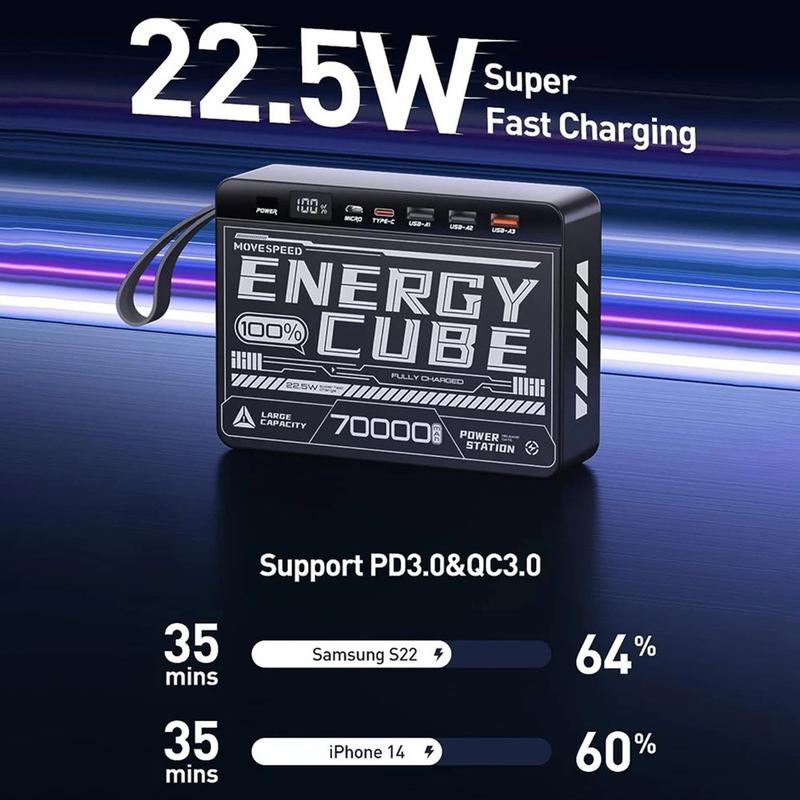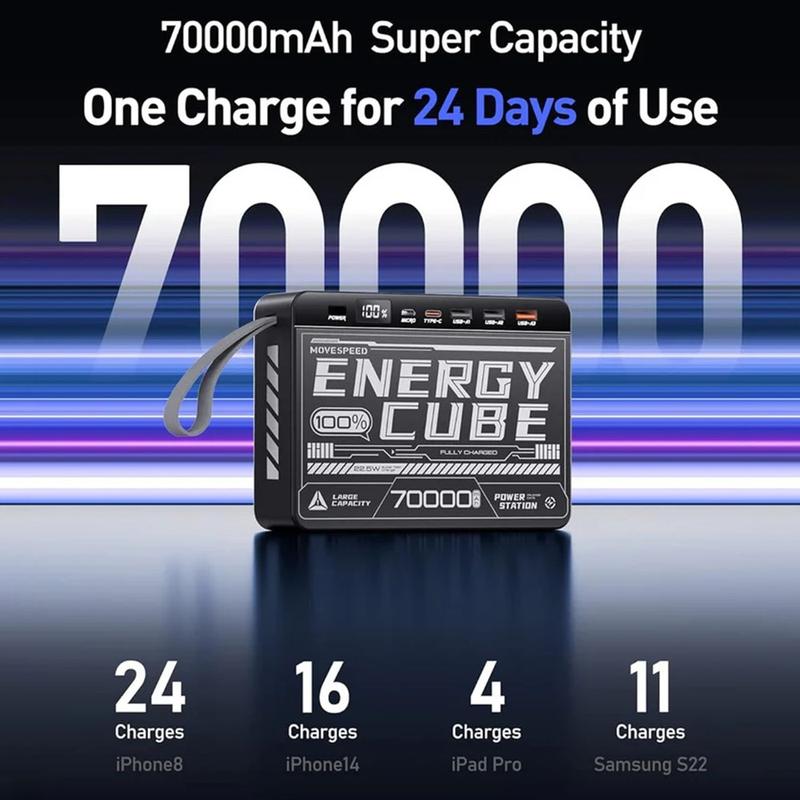 Movespeed Z70 70000mAh powerbank - 22.5W hurtigladende bærbar lader med 5 porter