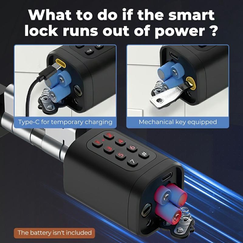 MS001-B-BLU drives av 3 AAA LR03-batterier, så det er ikke behov for fast strømtilkobling. Batterilevetiden kan vare opptil 12 måneder ved normal bruk, noe som bidrar til å holde vedlikeholdet enkelt. Hvis batteriene går tomme, lar den innebygde Type-C-nødladingsporten deg drive låsen midlertidig, slik at du fortsatt kan låse opp døren uten risiko for å bli låst ute.