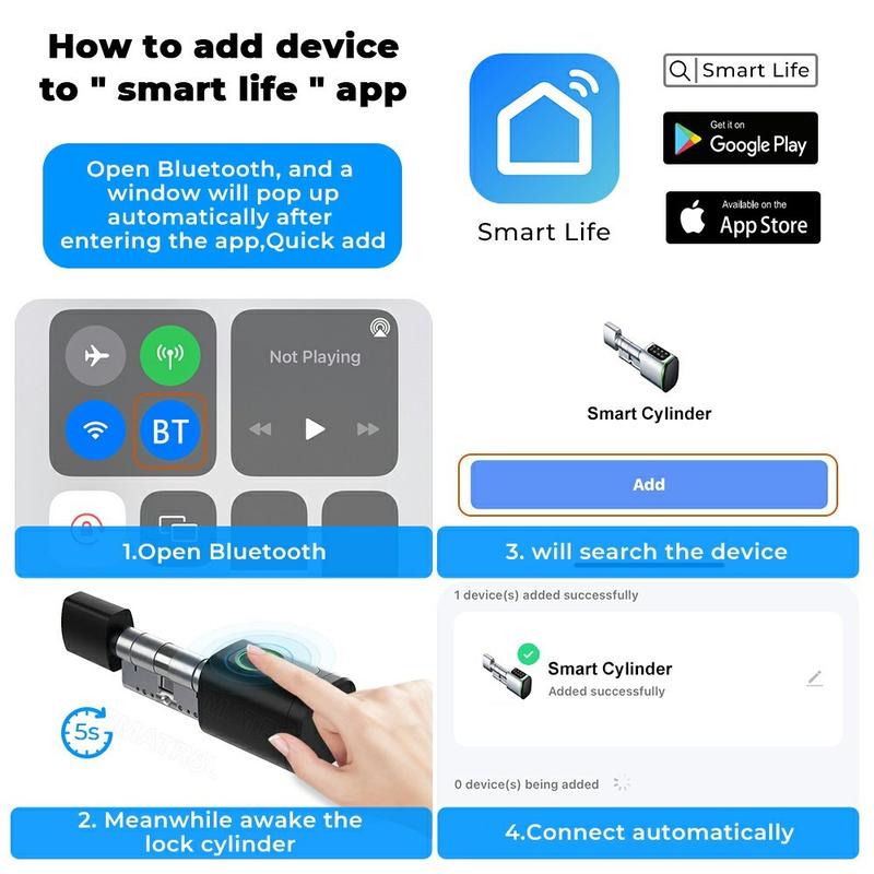 MS001-B-BLU smart dørlåssylinder er en praktisk oppgradering for alle som ønsker mer praktisk og sikker tilgang til hjemmet, kontoret eller utleieboligen. Ved å kombinere smart app-styring, fingeravtrykkgjenkjenning, passordinntasting, korttilgang og tradisjonell nøkkelåpning gir den deg fleksible måter å åpne døren på uten å være avhengig av vanlige nøkler. Den moderne designen og den justerbare sylinderen i europeisk stil gjør den til et smart valg for daglig sikkerhet og enklere tilgangsstyring.