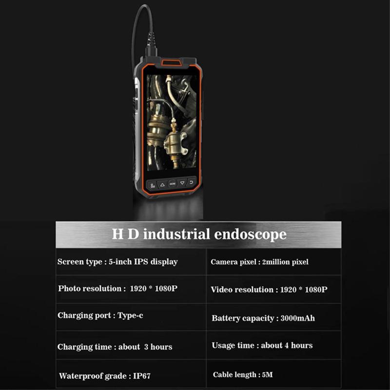 MS20 5 m LED-inspeksjonskamera med fast ledning og lys Boreskop Endoskop med tre linser