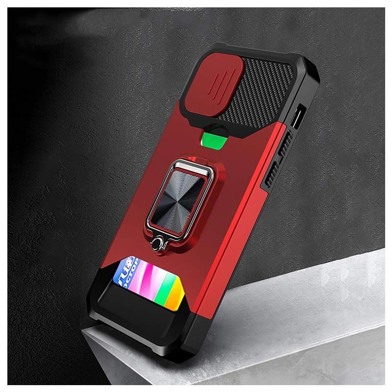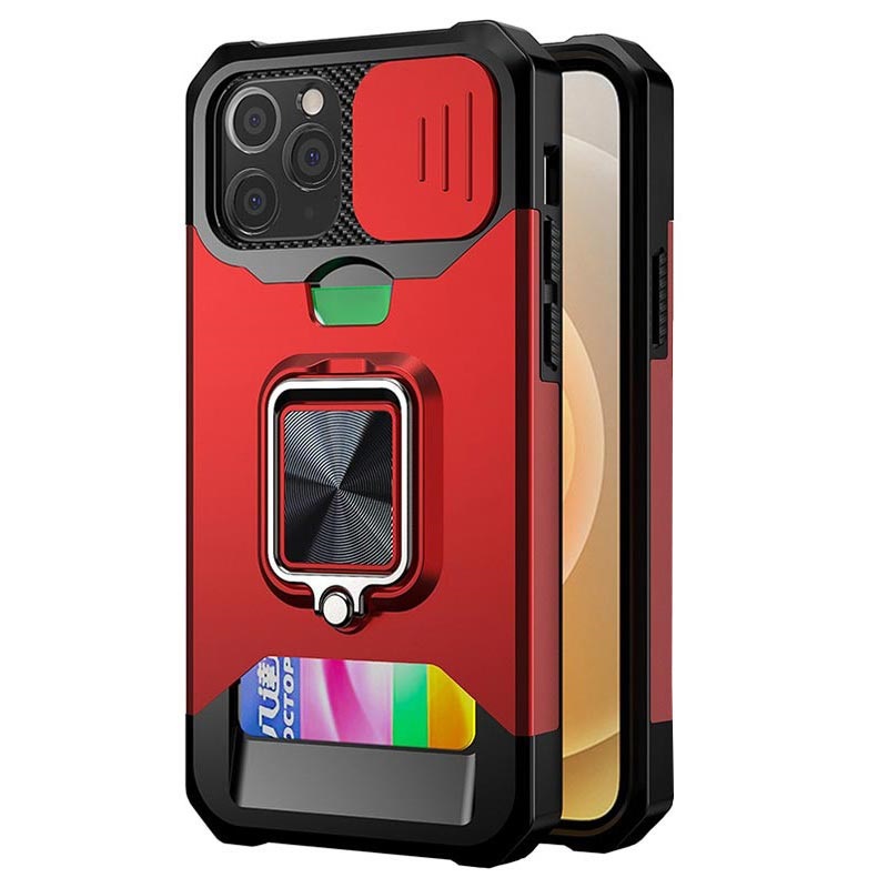 Multifunksjonell 4-i-1 Hybrid-deksel til iPhone 12, iPhone 12 Pro med Kortholder, Magnetisk Ring, Stativ, Kamera Beskytter