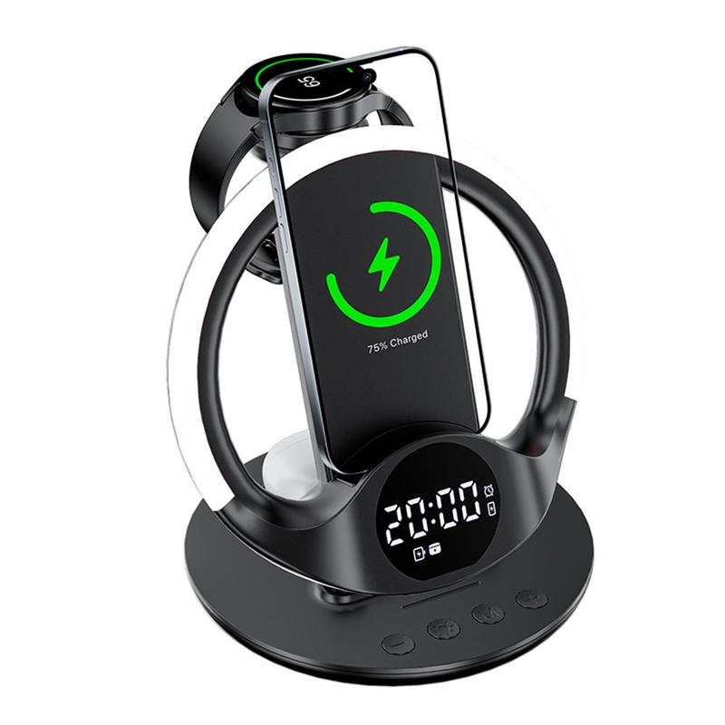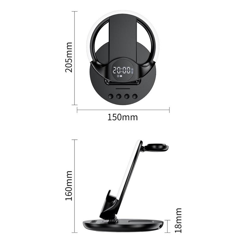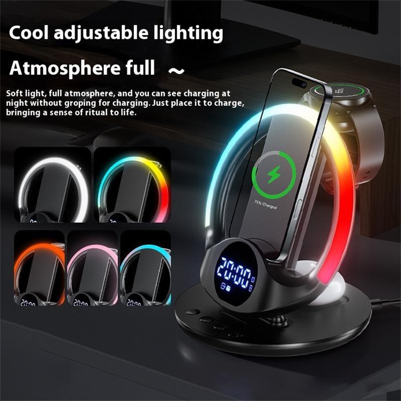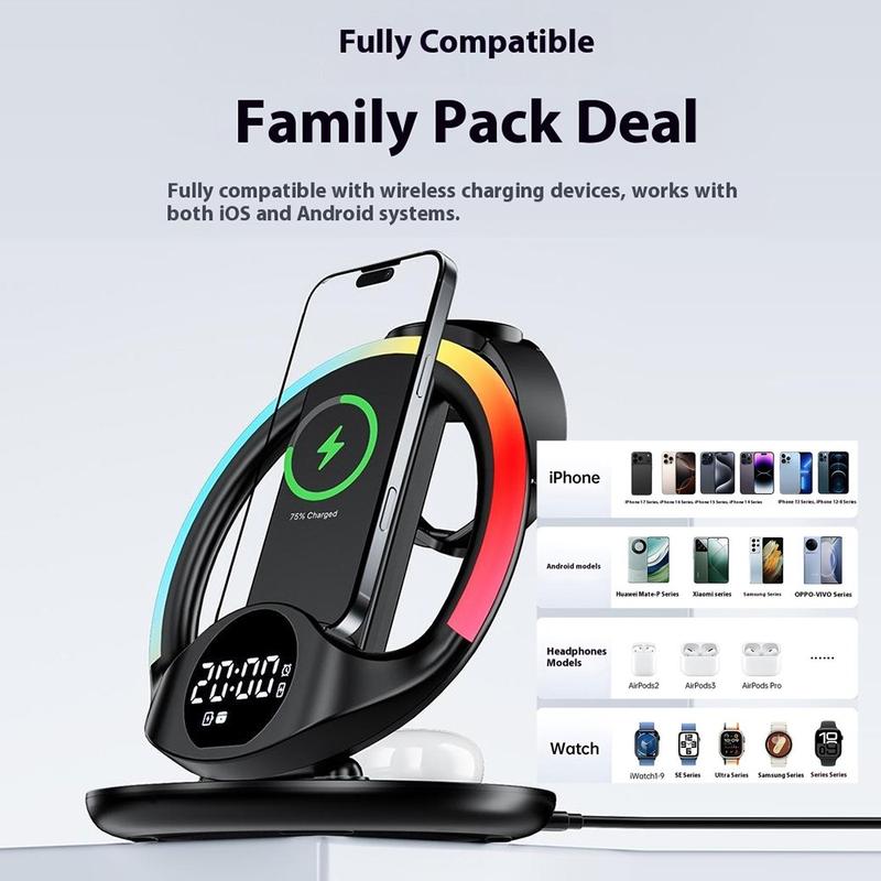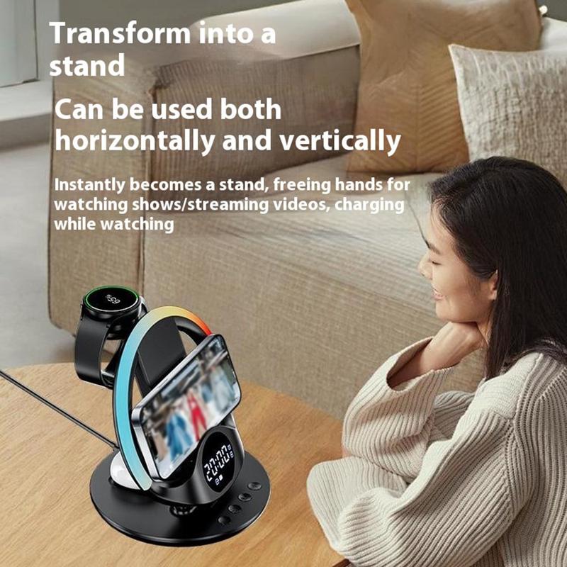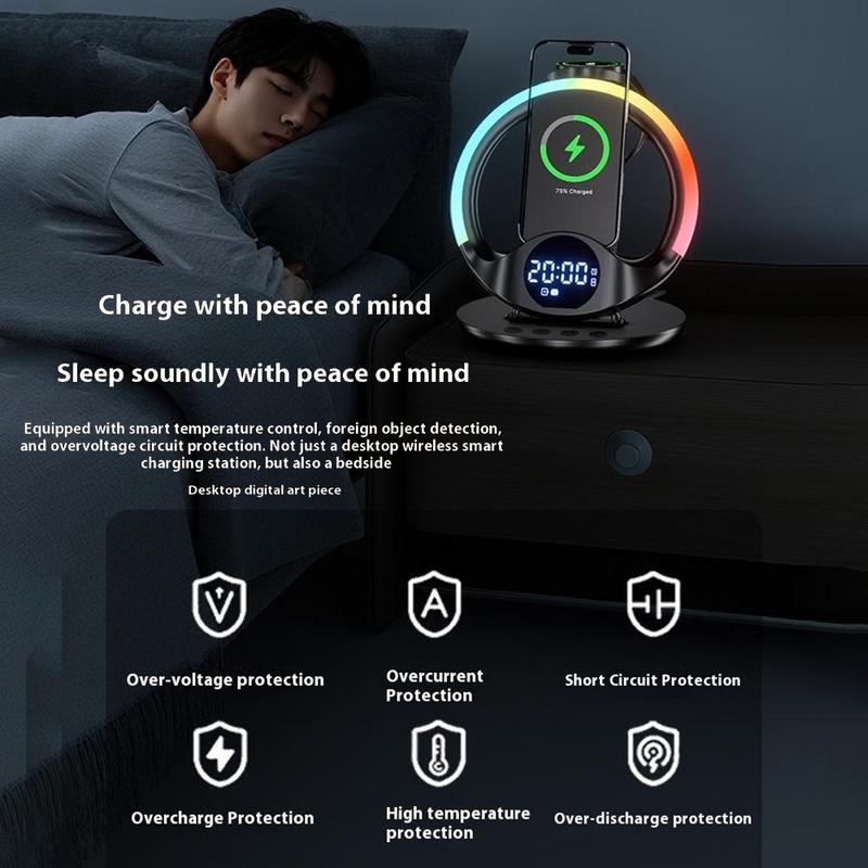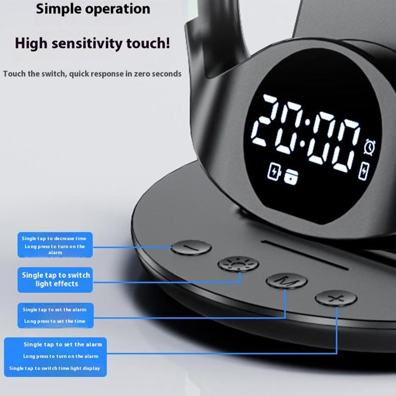 N01 6-i-1 trådløs ladestasjon / magnetisk hurtigladestativ med vekkerklokke, smart temperaturkontroll og nattlys