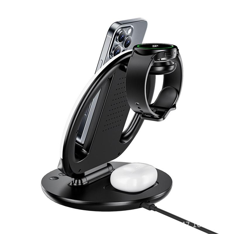 Få strøm til alle de viktigste enhetene dine med N01 6-i-1 trådløs ladestasjon, den ultimate alt-i-ett-ladehuben for smarttelefoner, smartklokker og ørepropper. Den er designet for både Apple- og Samsung-brukere og kombinerer funksjonalitet, stil og sikkerhet i én kompakt stasjon - perfekt for skrivebordet, nattbordet eller kontoret.