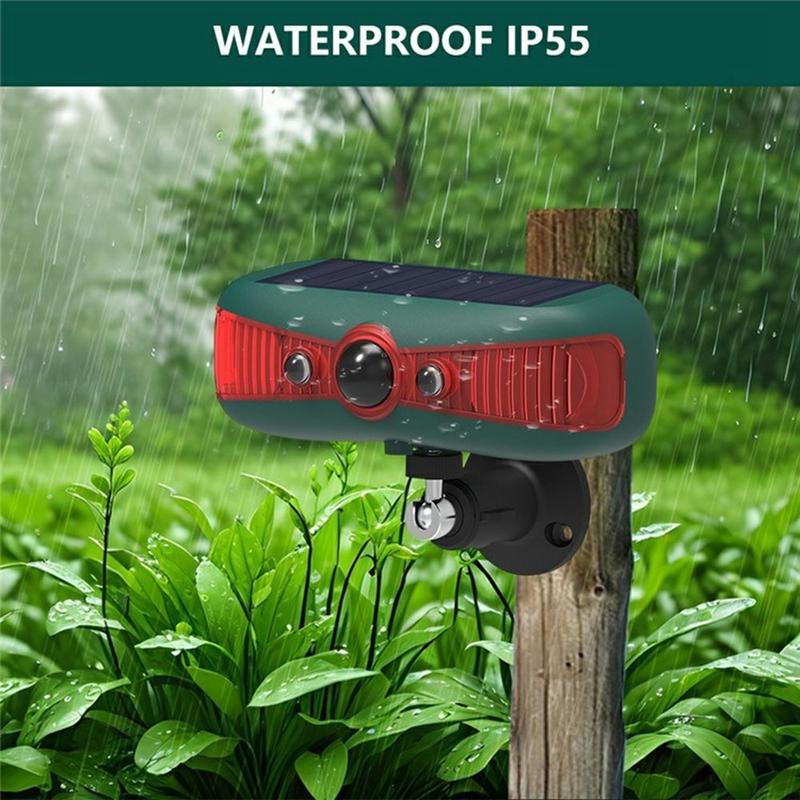 - Bevegelsesaktivert dyreavviser med lyd- og lysvarsler