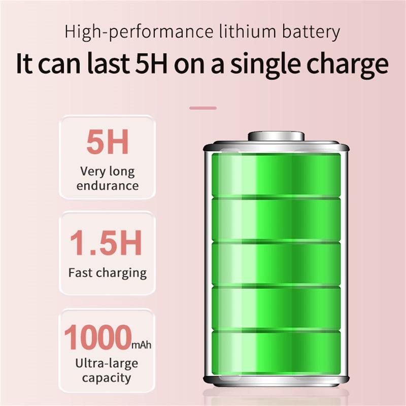 - Lang batterilevetid - Drives av et oppladbart batteri på 1000 mAh, som gir opptil 5 timers kontinuerlig drift på en enkelt 1,5-timers lading via Type-C-grensesnittet.