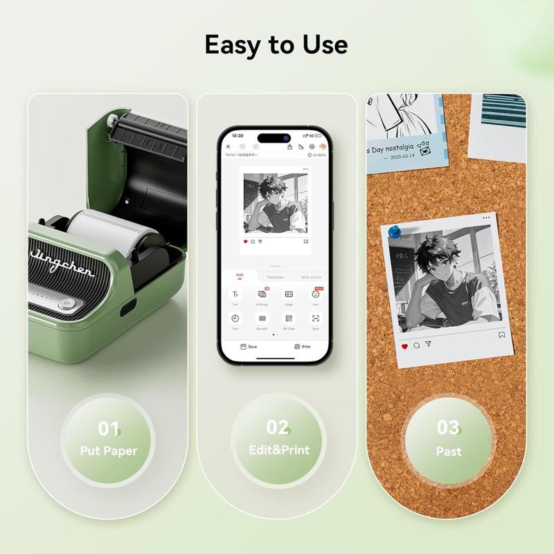 - Oppladbar og effektiv - Utstyrt med et 1500 mAh-batteri som gir timevis med utskrift per lading; lades enkelt opp via Type-C på 3-4 timer.