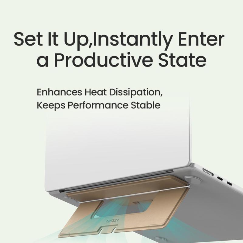Oppgrader arbeidsområdet ditt, forbedre arbeidsstillingen og beskytt den bærbare datamaskinen med NILLKIN Dual-Wing Adhesive Laptop Stand - din pålitelige partner for uanstrengt produktivitet når du er på farten.
