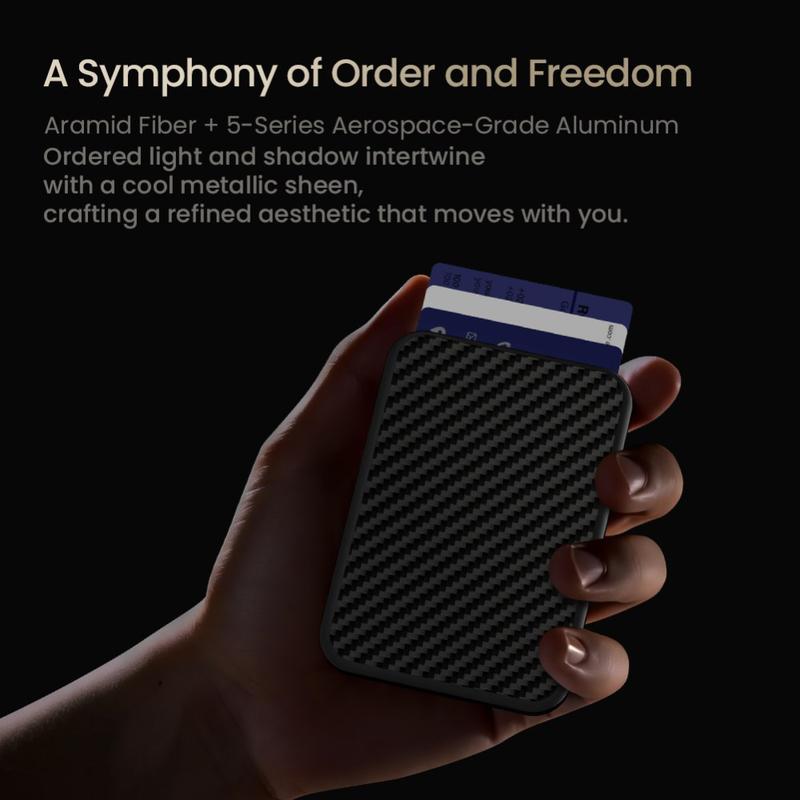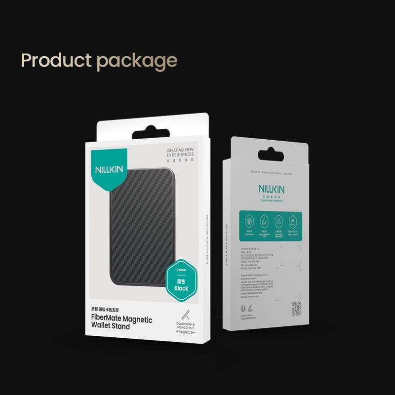 Nillkin FiberMate MagSafe-kortholder og stativ - Ultratynn lommebok i aramidfiber med RFID-beskyttelse