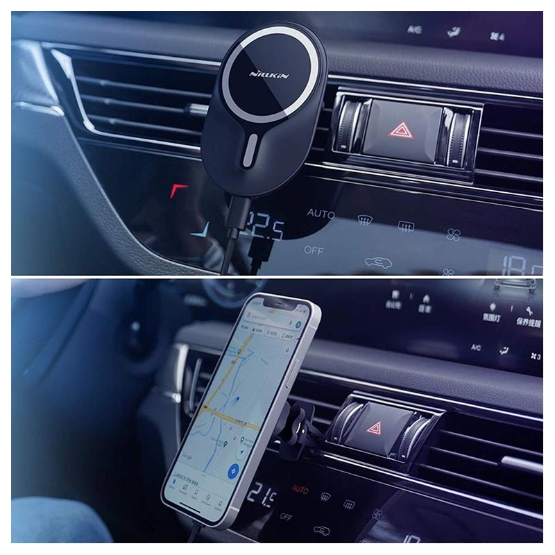 Nillkin MagRoad Magnetic Trådløs Lader / Bilholder til iPhone 16, iPhone 16 Plus, iPhone 16 Pro, iPhone 16 Pro Max, iPhone 15, iPhone 15 Plus, iPhone 15 Pro, iPhone 15 Pro Max, iPhone 14, iPhone 14 Plus, iPhone 14 Pro, iPhone 14 Pro Max, iPhone 13, iPhone 13 Mini, iPhone 13 Pro, iPhone 13 Pro Max, iPhone 12, iPhone 12 Pro, iPhone 12 Pro Max, iPhone 12 Mini - 10W