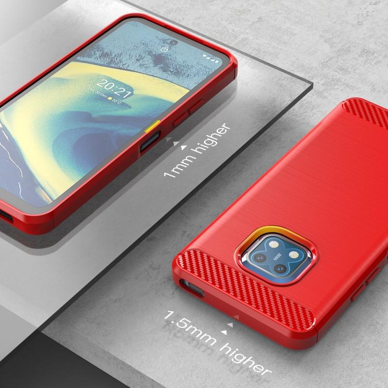 Det børstede TPU-dekselet beskytter din Nokia XR20 tilstrekkelig, samtidig som det gir den en flott stil, takket være karbonfibermønsteret på baksiden. Dekselet sikrer også overoppheting når du bruker Nokia XR20, med sitt varmespredningsdesign.