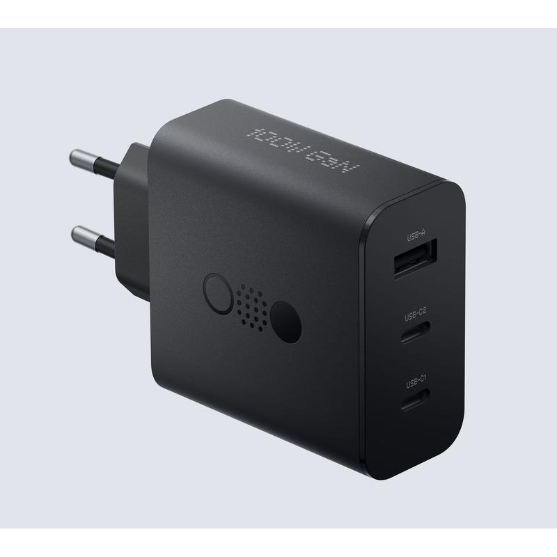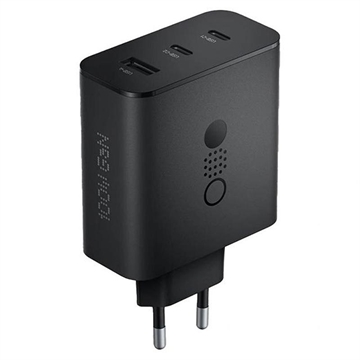 - Totalt 3 porter (2x USB-C, 1x USB-A) for fleksibel lading av flere enheter