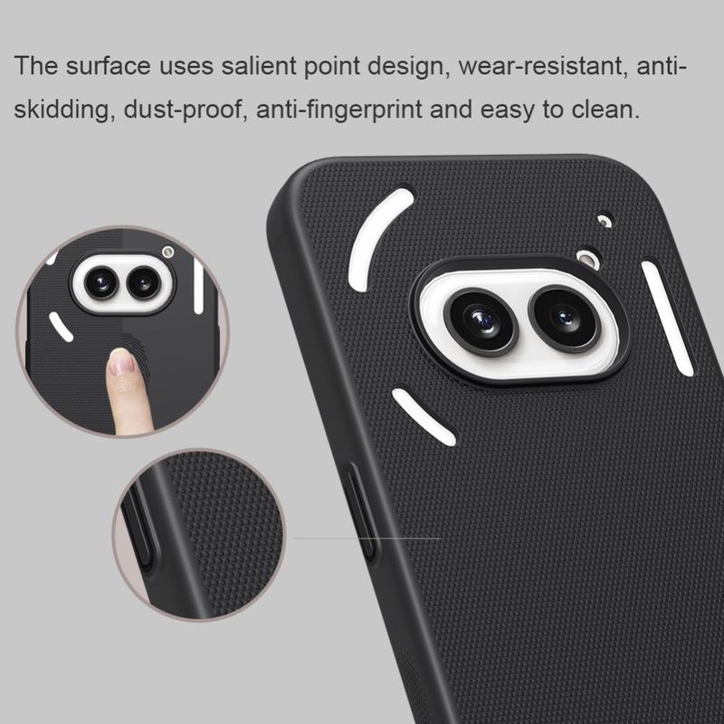 - Nillkin Super Frosted Shield dekselet til Nothing Phone (2a), Nothing Phone (2a) Plus har presise utklipp
