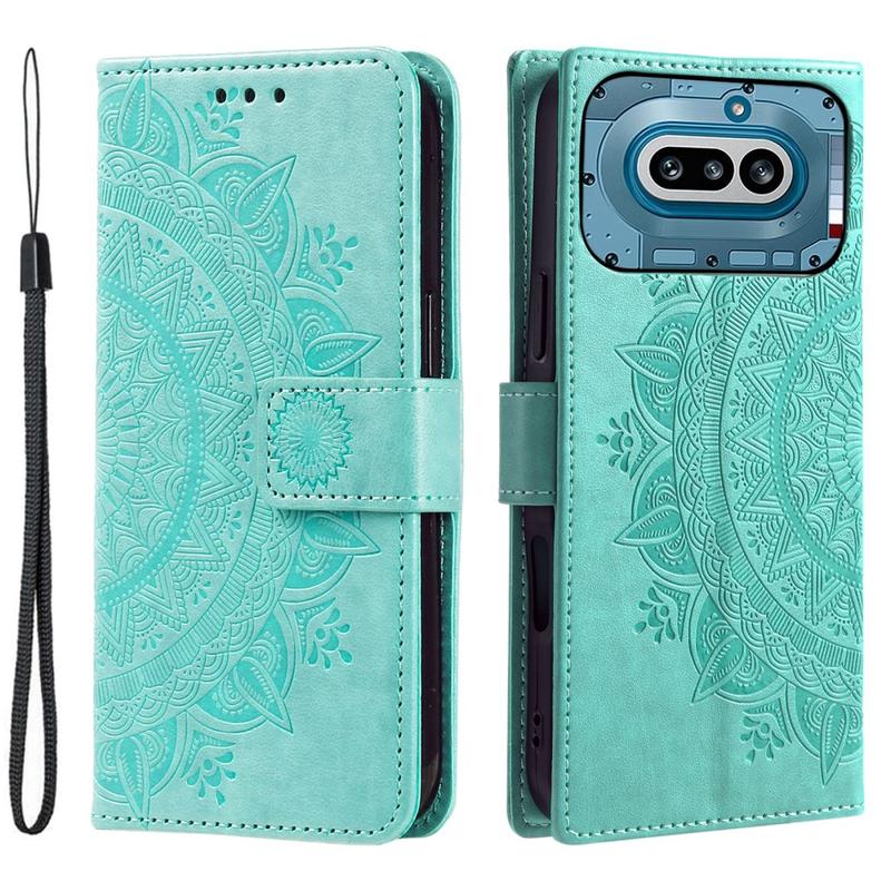 Nothing Phone (4a) Pro Mandala Lommebok-deksel med håndleddsstropp - mintgrønn