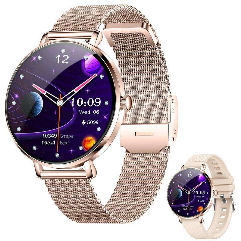 NX21 Smartklokke for kvinner - AMOLED Smartklokke for helseovervåking med Bluetooth 5.3, dobbel reim og vanntett IP68-beskyttelse
