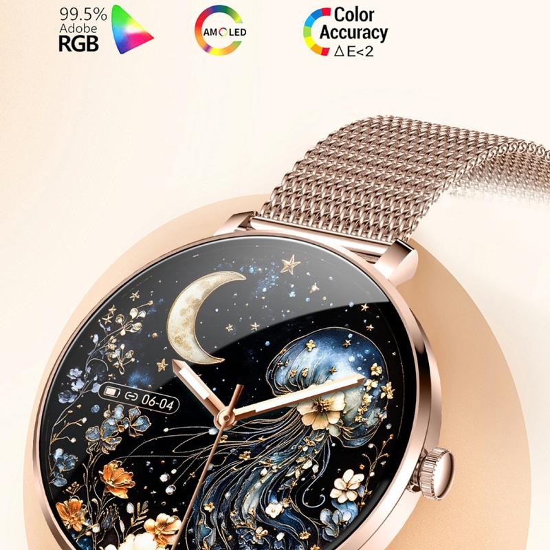 - AMOLED-skjerm med høy oppløsning: 1,32" skjerm med 466×466 oppløsning og 650 lumen lysstyrke sikrer skarpe bilder i all slags belysning.