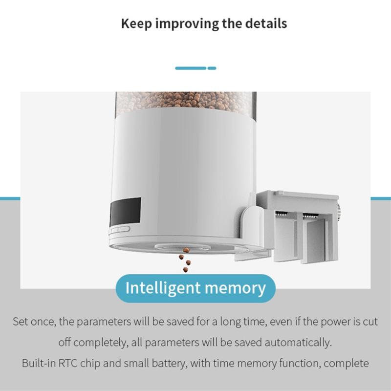 - Stor kapasitet: 500ml fôrbeholder har plass til ulike typer tørrfôr, noe som reduserer antall påfyllinger.