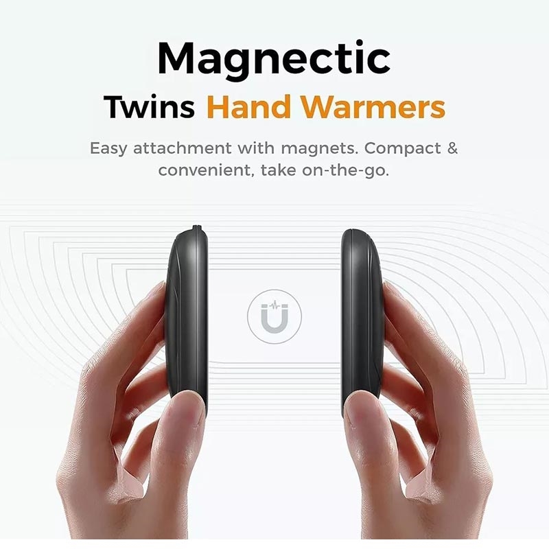 - Magnetisk design - Fest begge varmerne sammen for praktisk oppbevaring, eller ha dem hver for seg for å varme opp hver hånd uavhengig av hverandre.