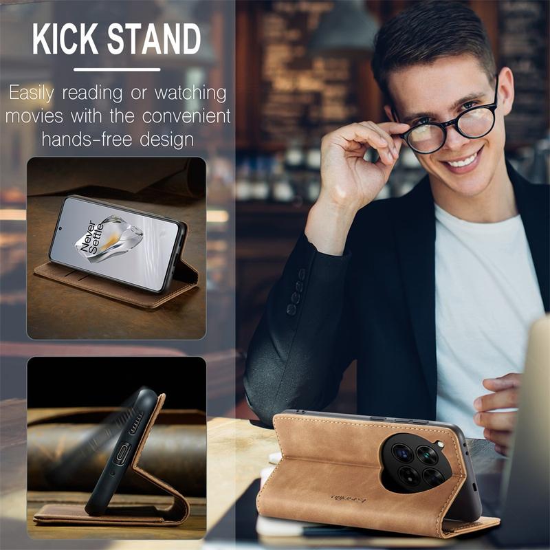 En kombinasjon av TPU og polyuretan gir allsidig beskyttelse til OnePlus 12 og beskytter den mot støv, smuss, støt, riper og daglig slitasje. Magnetisk lukking holder dekselet trygt på plass og smart design muliggjør håndfri bruk mens du ser på medieinnhold.
