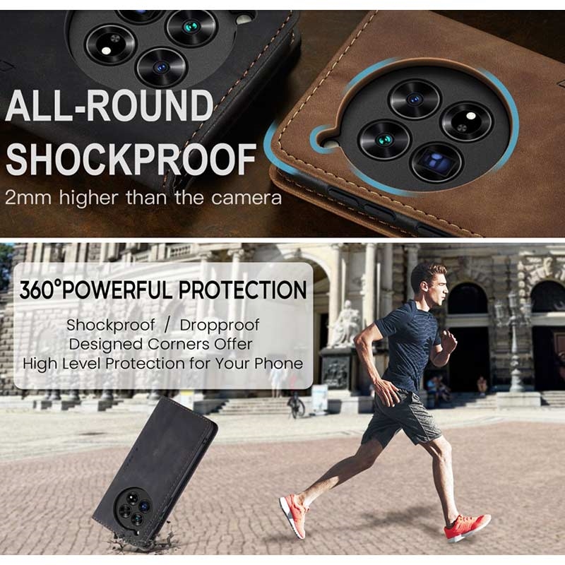 En kombinasjon av TPU og polyuretan gir allsidig beskyttelse til OnePlus 12 og beskytter den mot støv, smuss, støt, riper og daglig slitasje. Magnetisk lukking holder dekselet trygt på plass og smart design muliggjør håndfri bruk mens du ser på medieinnhold.