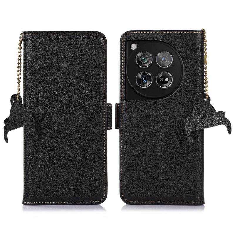 - Høykvalitets lommebokdeksel i ekte skinn til OnePlus 12