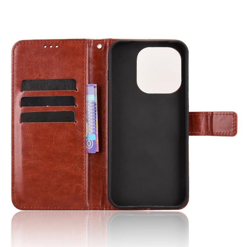 Navnet "Crazy Horse" kommer fra tradisjonelt hestesadelmakeri; den strukturerte overflaten er behandlet med voks som skaper en tofarget pull-up-effekt som etterligner fullnarvet skinn, samtidig som det er dyrevennlig, lettere og mer ripebestandig. Det gjør det ideelt for daglig bruk av telefontilbehør der både holdbarhet og stil er viktig.