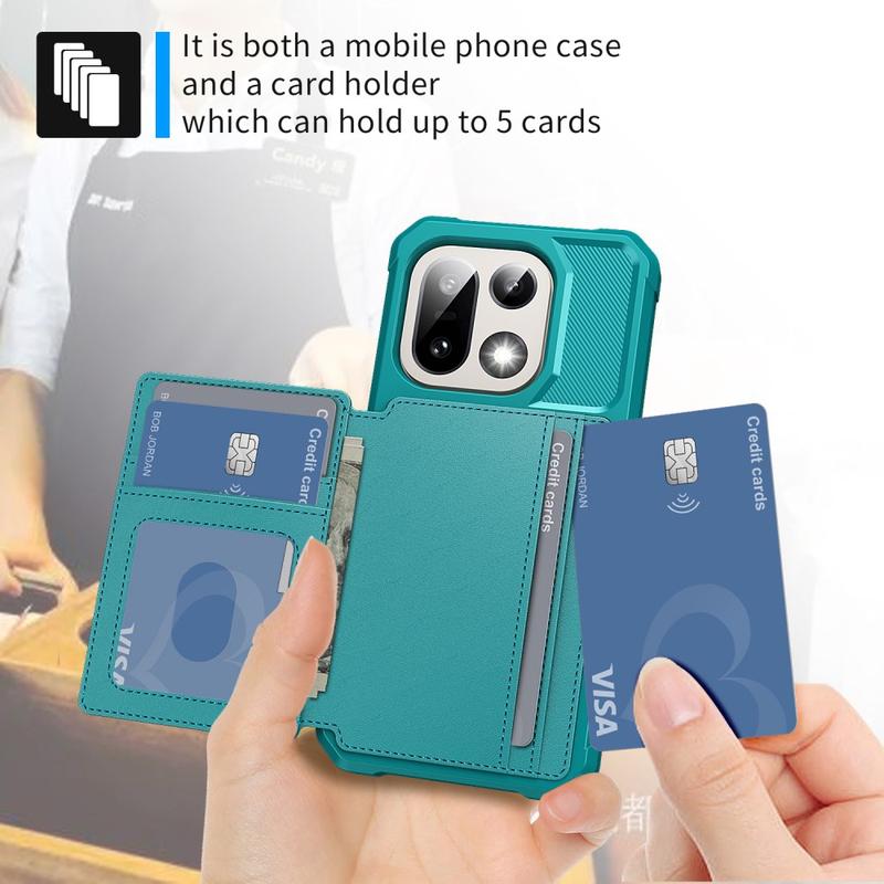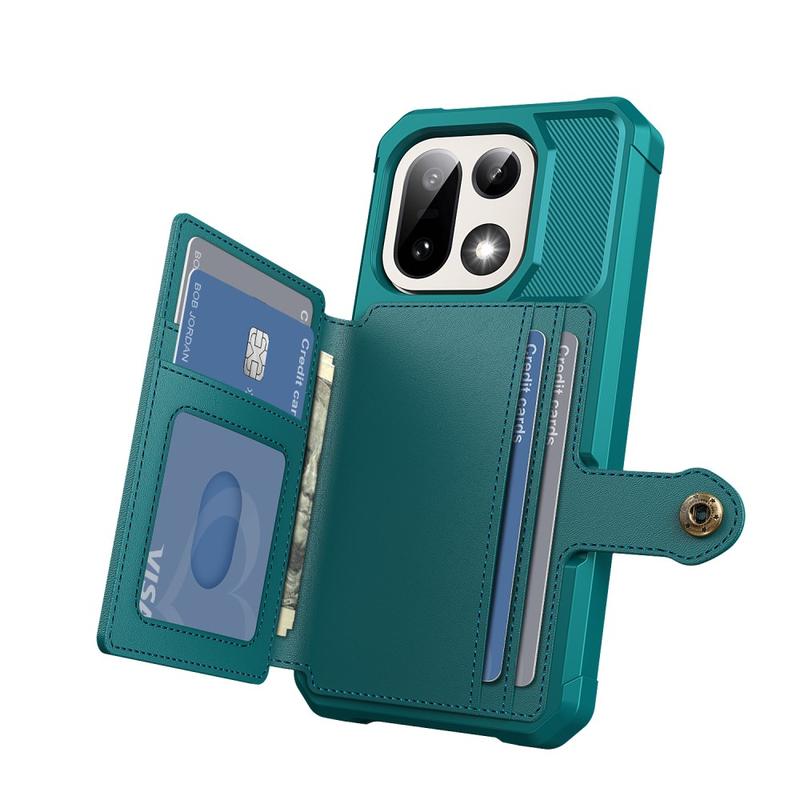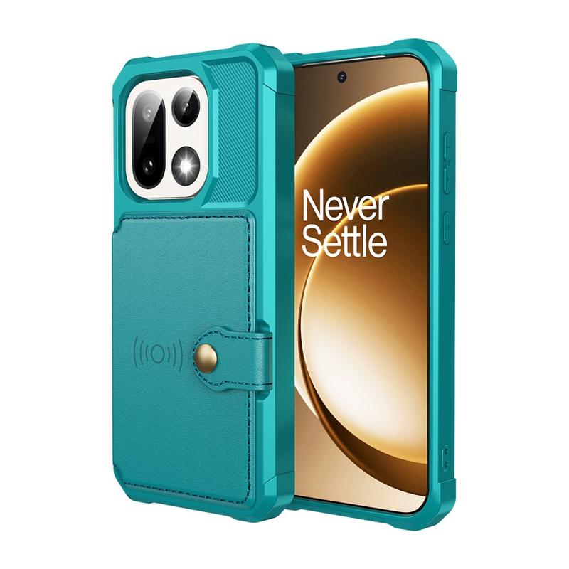 - Lommeboketuiet til OnePlus 15 har en sikker lukking med trykknapp, lommebokdesign og flere kortspor med kontantlomme.