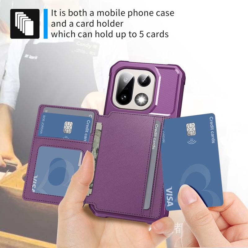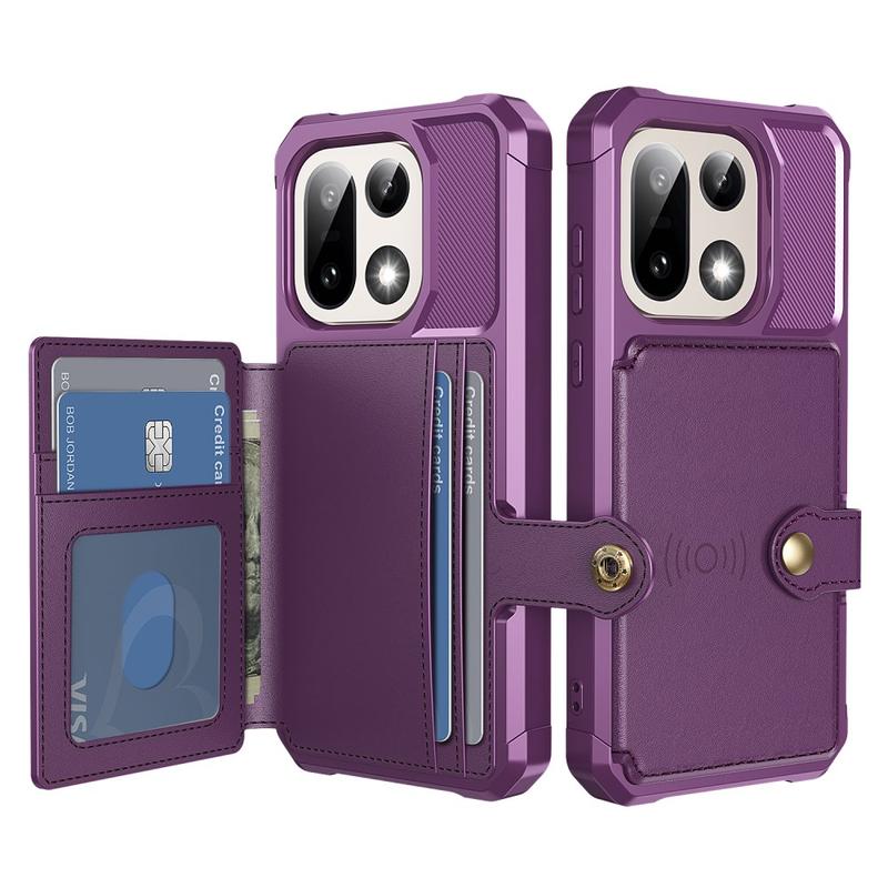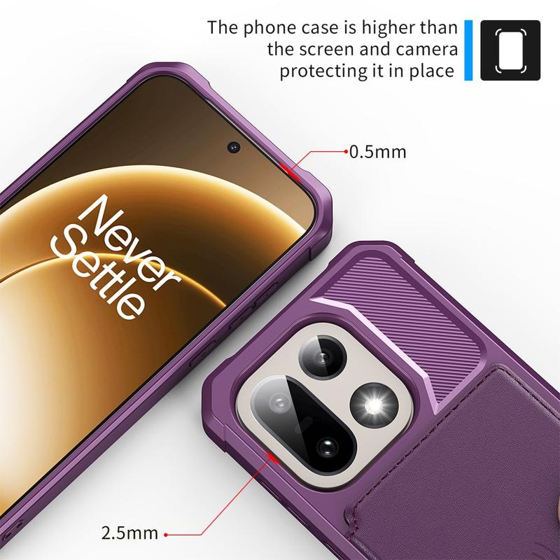 - Lommeboketuiet til OnePlus 15 har en sikker lukking med trykknapp, lommebokdesign og flere kortspor med kontantlomme.