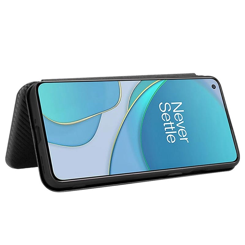 Hold OnePlus 8T trygg inne i dette flip-dekselet med karbonfibertekstur.
