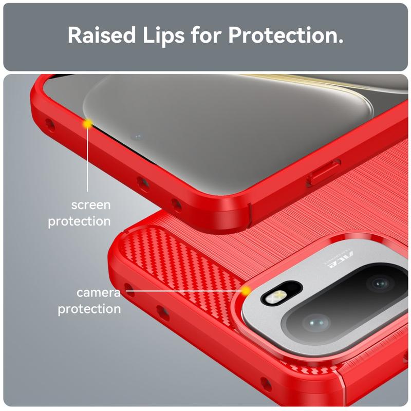 OnePlus Ace 6/6T/15R børstet TPU-deksel - karbonfiber - rød
