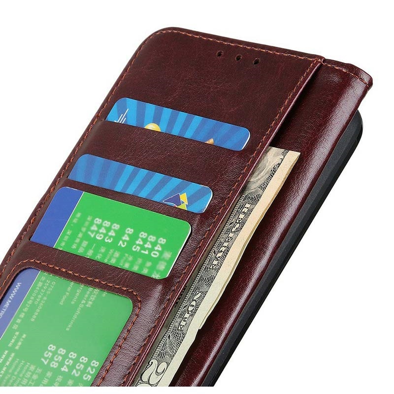 Gi din nye OnePlus Nord 5 et raffinert vintageutseende samtidig som den erstatter hverdagslommeboken din. Eksteriøret i polyuretan med Crazy Horse-tekstur kombineres med et støtdempende TPU-skall for å beskytte mot fall og riper, mens smarte lommer holder orden på kort og kontanter.