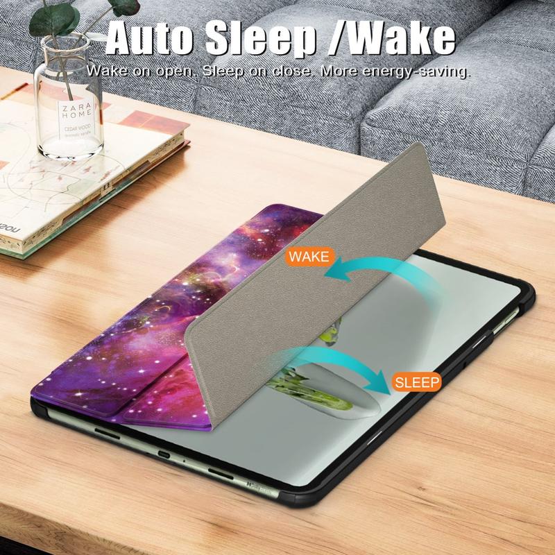 Enten du ser på en video eller tegner med pekepennen din på OnePlus Pad Go, Oppo Pad Air2, holder foliedekslet det i din ideelle vinkel, og gir en mer komfortabel og produktiv opplevelse. Den smarte hvilemodus-funksjonen slår og av automatisk skjermen når du åpner og lukker klaffen.
