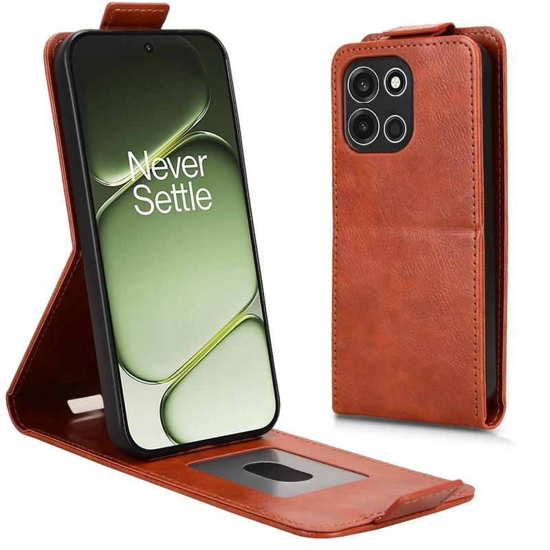 OnePlus Turbo 6 vertikalt flip-etui med stativ - Brun