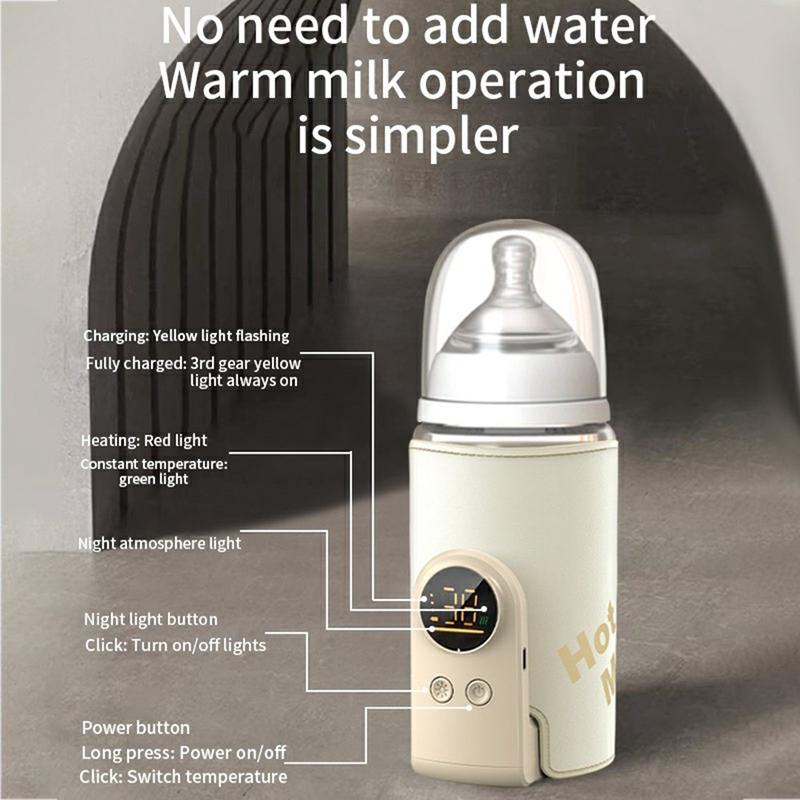 Bærbar tåteflaskevarmer - smart temperaturkontroll, 360° varmehylse med USB/Type-C hurtiglading