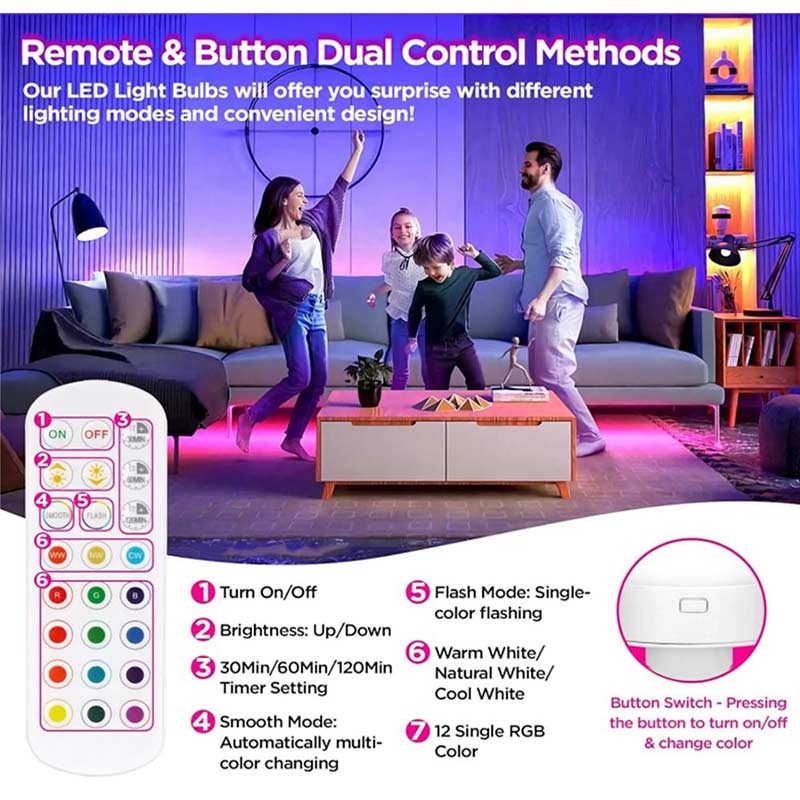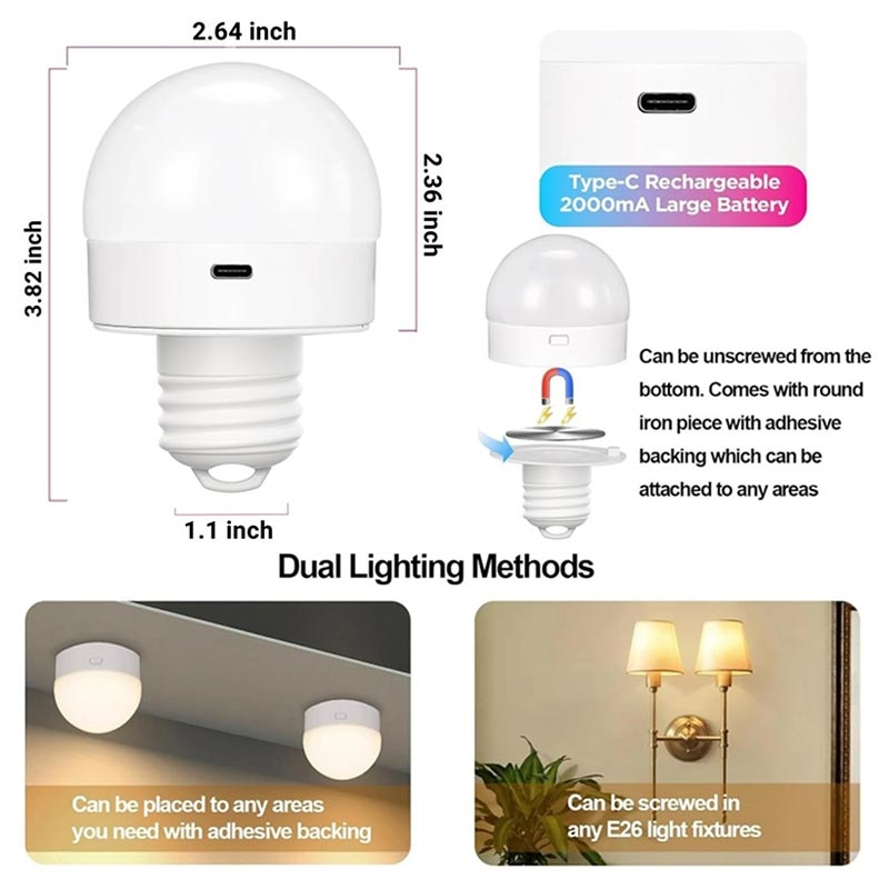 Lys opp rommet ditt med de allsidige E27 oppladbare lyspærene. Disse pærene har et innebygd høykapasitetsbatteri på 1800 mAh, og er perfekte for områder uten fast kabling eller strømuttak. Den magnetiske sokkelen gjør det enkelt å lade opp, mens fjernkontrollen gjør det enkelt å justere lysstyrke, varme og farge. Disse pærene er ideelle for innendørs og utendørs bruk, og gir opptil 15 timers kontinuerlig lys.