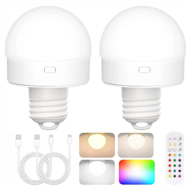 Oppladbar lyspære m. RGB og fjernkontroll - E27 - 2 stk.