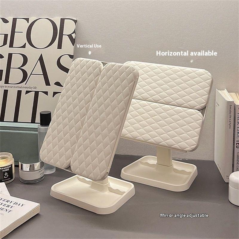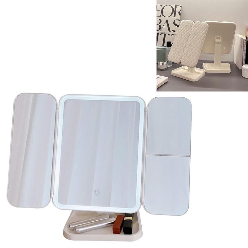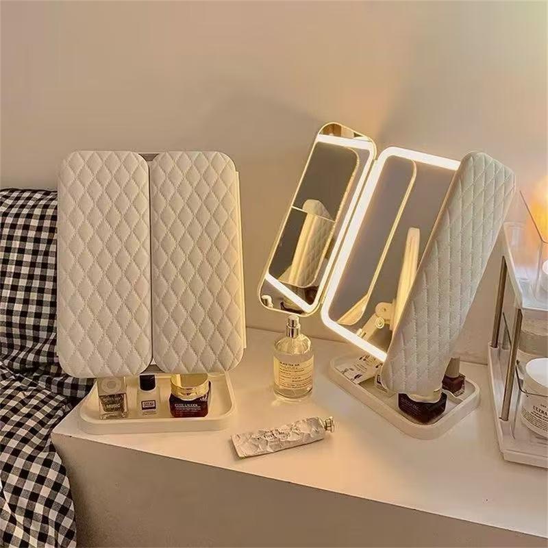 Tri-Fold LED-sminkespeil kombinerer stil, funksjonalitet og bekvemmelighet. Med justerbar belysning, presisjonsforstørrelse og ledningsfri design er det et uunnværlig tilbehør for å oppnå en feilfri sminke uansett lysforhold.