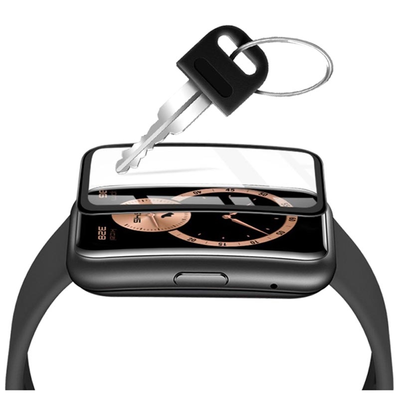 Med en Imak Full Coverage skjermbeskytter i herdet glass laget av PMMA-glass, er Oppo Watch 3 Pro trygg mot støt, riper, støt. Den svarte skjermbeskytterkanten gir deg et mer tiltalende utseende, og det ultratynne glasslaget forstyrrer ikke vanlig bruk av Oppo Watch 3 Pro.