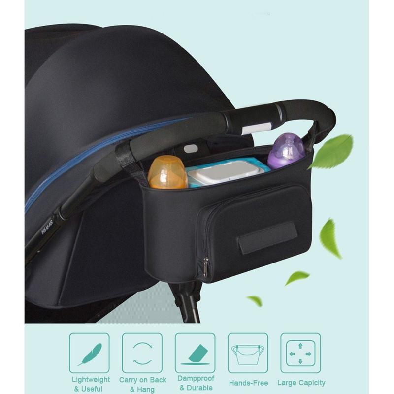 Hold orden på alt det viktigste for babyen med denne praktiske barnevognvesken. Den er designet for å passe til de fleste barnevognstenger og -håndtak, og gir sjenerøs oppbevaring for hverdagslige utflukter samtidig som den er lett og enkel å bære. Det vanntette, slitesterke materialet beskytter tingene dine mot søl og vær og vind, og den åpne baklommen gir deg rask tilgang til ofte brukte ting som våtservietter, telefon eller snacks.