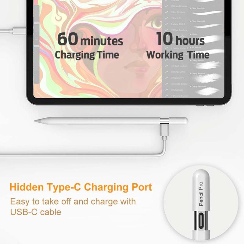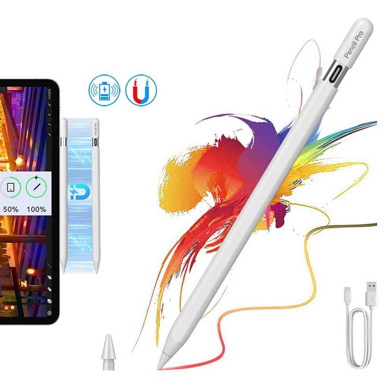 P24 Pro magnetisk ladbar penn for iPad - trådløs blyant med utskiftbar 1,7 mm spiss, 10 timers batteri, Type-C reservekabel