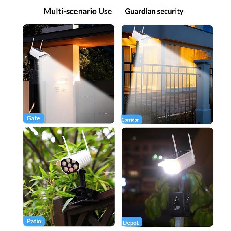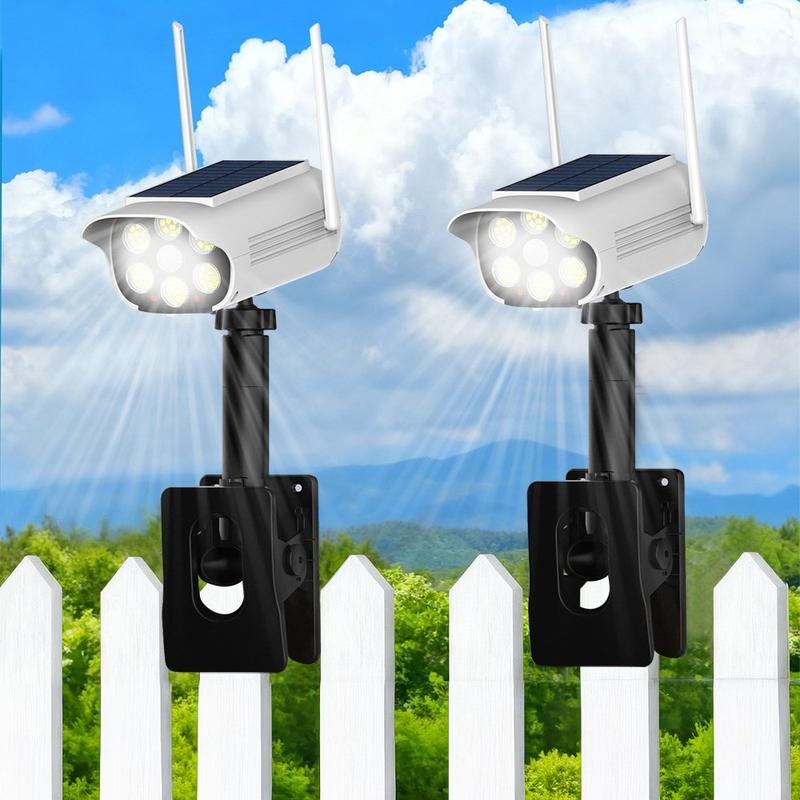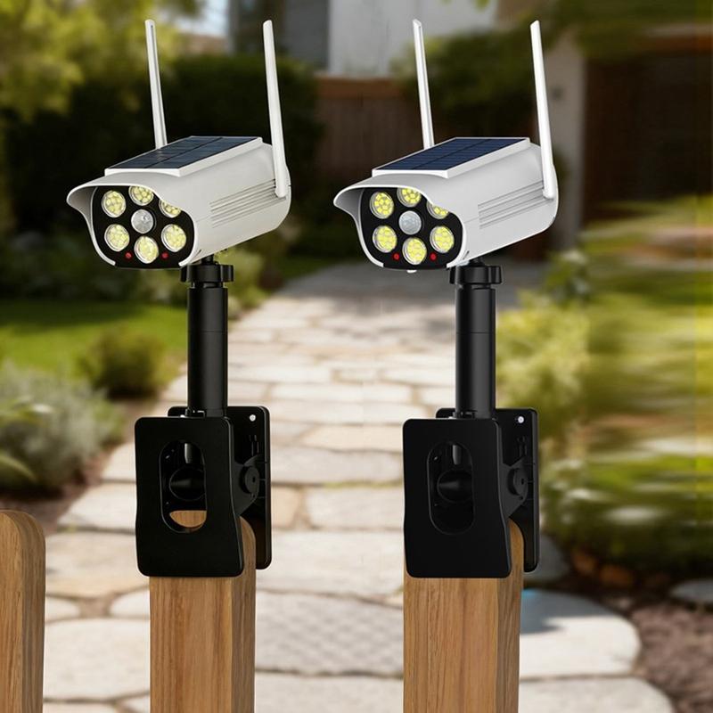P43 solcellelampe med simulert sikkerhetskamera er en IP44-vanntett utendørs LED-bevegelsessensorlampe med 66 LED-er, et 1500 mAh-batteri og automatisk lysstyring fra skumring til daggry. Med et realistisk design som ligner et kamera, justerbar 360°-posisjonering og fleksibel klipsmontering, er det en praktisk solcelleløsning for hager, innganger, balkonger, gjerder og innkjørsler.