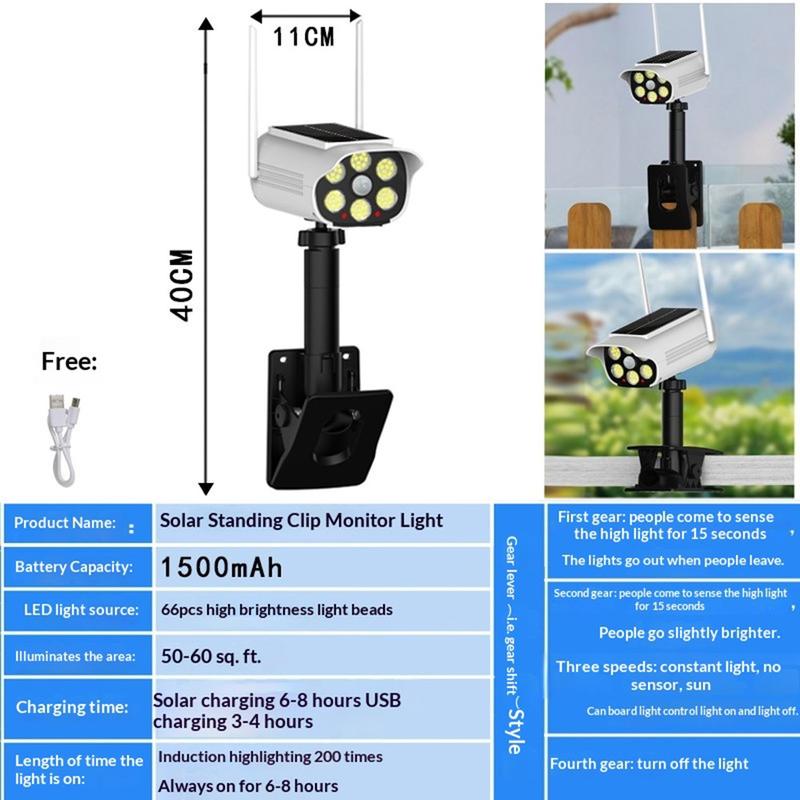 Det er også et godt valg for brukere som ønsker fleksibilitet i plasseringen. Den justerbare klemfeste, det roterende hodet og det solcelledrevne designet gjør det enklere å installere på en rekke utendørs steder. Enten du ønsker ekstra lys for sikkerhet, bekvemmelighet eller et mer sikkerhetsbevisst utendørs oppsett, tilbyr denne lampen en praktisk alt-i-ett-løsning.