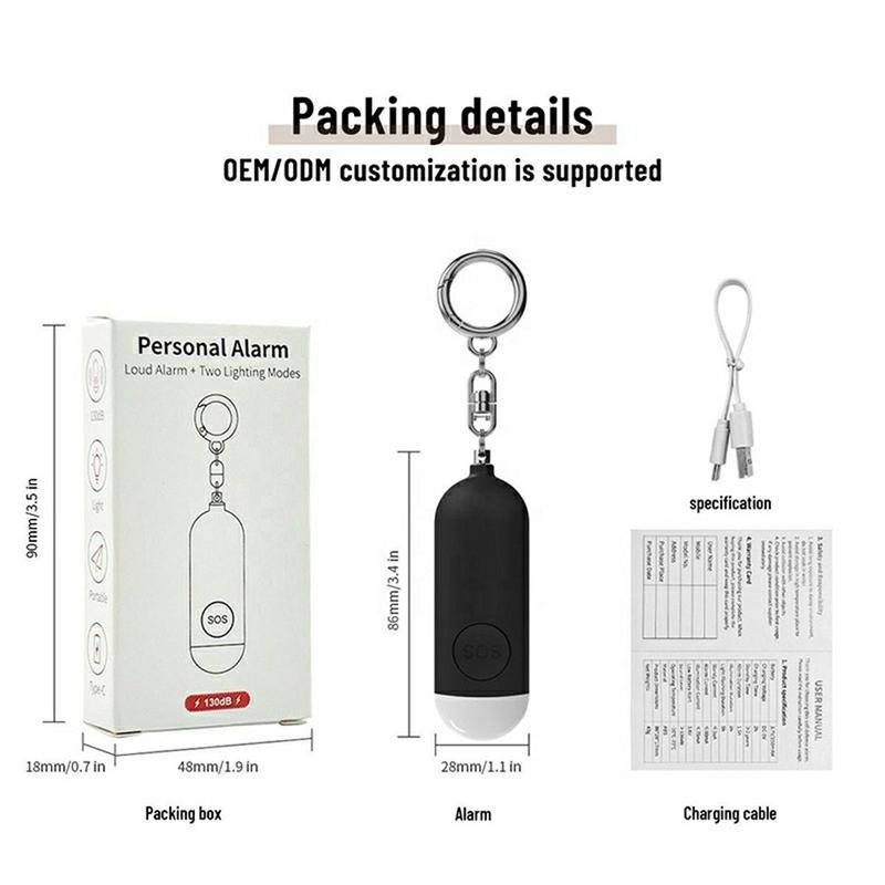 PA100 130 dB personlig sikkerhetsalarm - oppladbart LED-signal, dobbel utløser og 2 års standby
