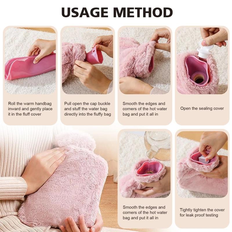 - Mykt kunstpelsdeksel - Det avtakbare, myke kaninpelshylsteret gir et ekstra lag med komfort, forhindrer direkte varmekontakt og holder varmen lenger.