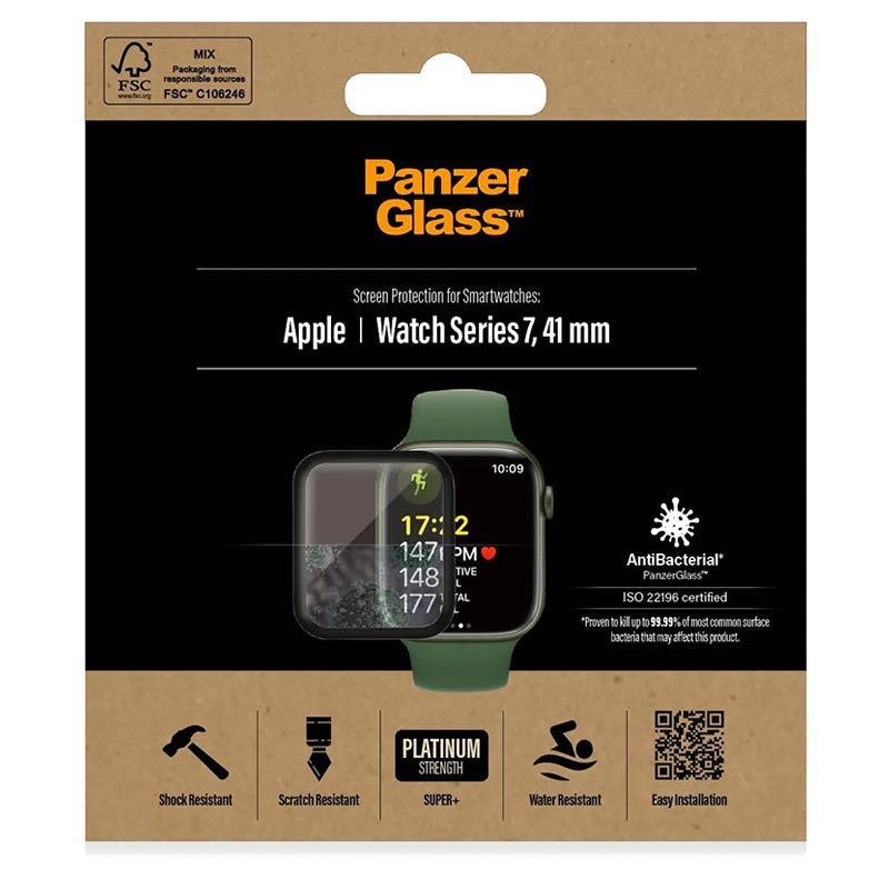 Hold skjermen på din Apple Watch Series 9/8/7 ripefri med PanzerGlass Antibakteriell skjermbeskytter.