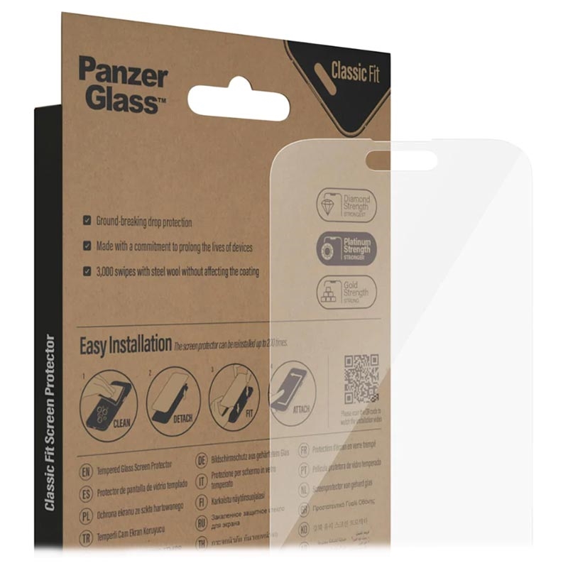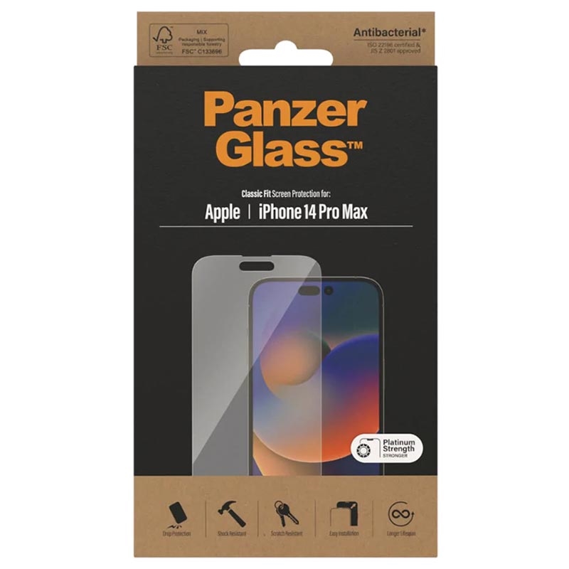 Med PanzerGlass Classic Fit iPhone 14 Pro Max Herdet Glass kan du nyte ro i sinnet, vel vitende om at telefonen din er beskyttet av en av de beste skjermbeskytterne på markedet.