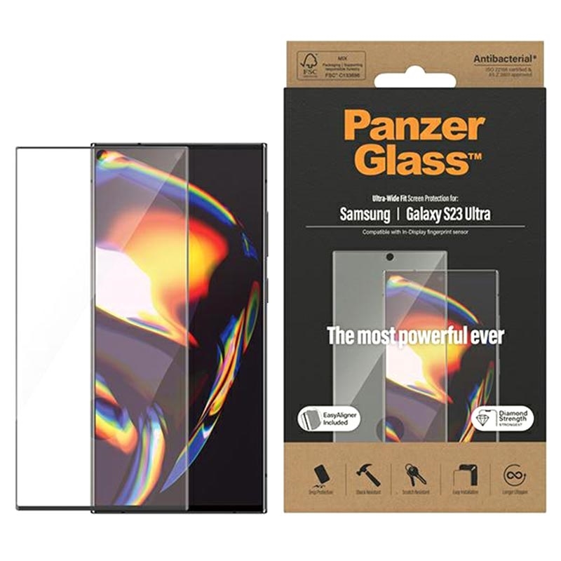 PanzerGlass Ultra-Wide Fit AntiBacterial Skjermbeskytter i Herdet Glass til Samsung Galaxy S23 Ultra 5G