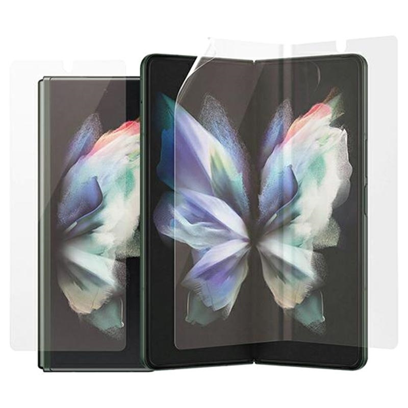 Den mest pålitelige skjermbeskyttelsen for din Samsung Galaxy Z Fold4 er gitt med PanzerGlass-skjermbeskyttersettet. Settet inkluderer en selvhelbredende, fleksibel TPU-skjermbeskytter for hovedskjermen med kant-til-kant-dekning og en skjermbeskytter for en frontskjerm laget av høykvalitets, platina-styrke herdet glass. I mellomtiden holder et antibakterielt og anti-fingeravtrykk oleofobisk lag på skjermbeskytteren flekker og bakterier langt unna din Samsung Galaxy Z Fold4.